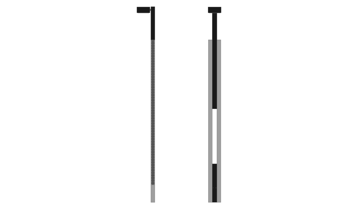 Profilés en aluminium extrudé fixés à structure en acier galvanisé à chaud verni à poudres avec RAL au choix ou anodisé.